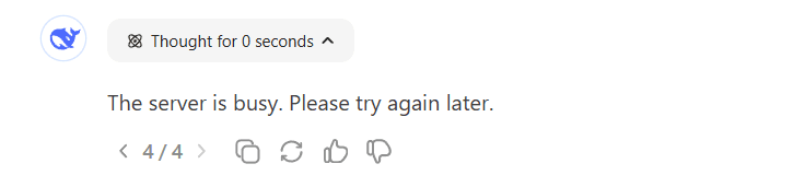 Deepseek ব্যবহার করে আমারো ব্যক্তিগতভাবে ভালো লেগেছে। তবে এর ফ্রি ভার্সনটির সার্ভার কিছুক্ষণ পর পরই ডাউন হয়ে যায়। তখন গালে হাত দিয়ে অপেক্ষা করা ছাড়া গতি থাকে না!