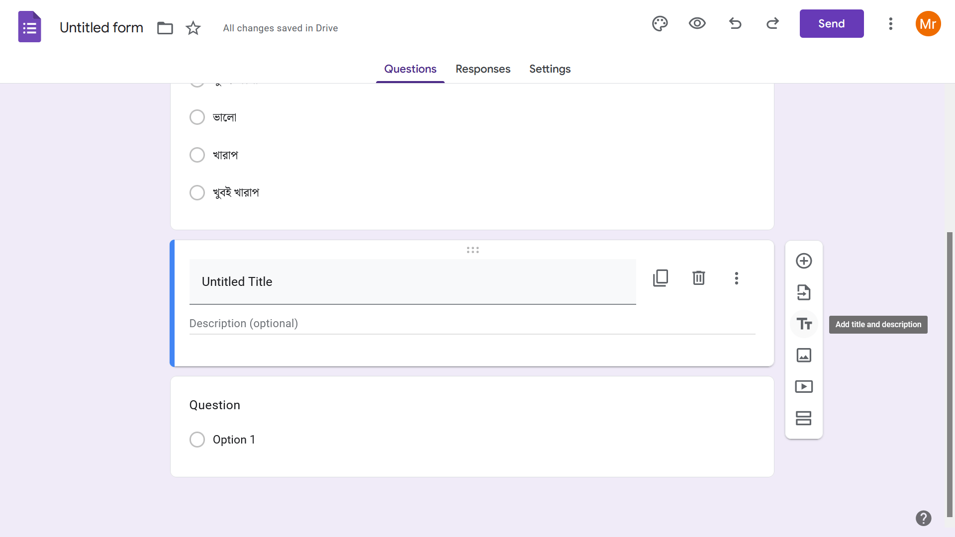 গুগল ফর্মে প্রশ্ন যুক্ত ও ইডিট করা