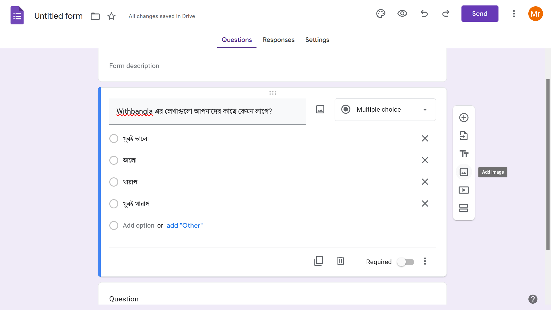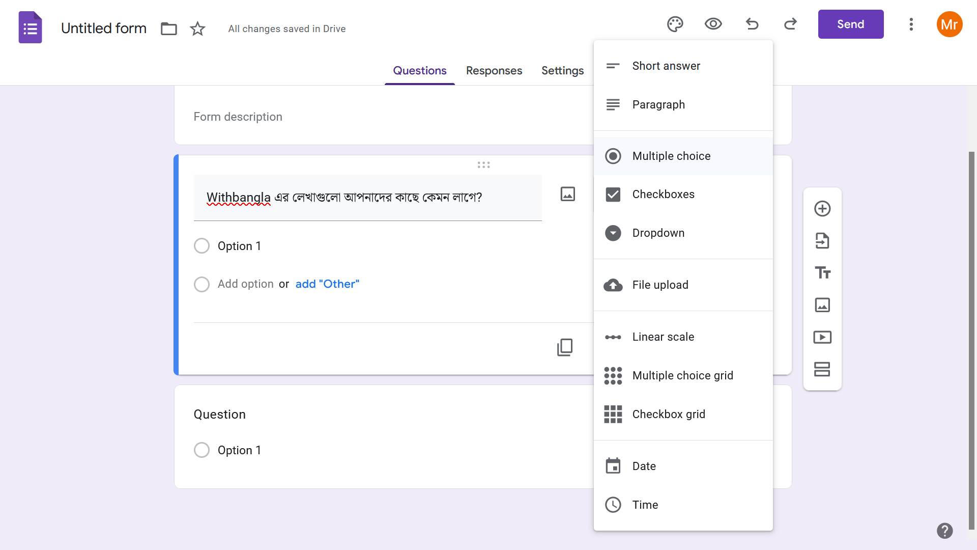 - তারপর, আপনি কোন ধরনের প্রশ্ন দিতে চাচ্ছেন সেটা সিলেক্ট করতে হবে। তারপর, প্রশ্নটি নির্দিষ্ট জায়গায় লিখে দিলেই কাজ শেষ।