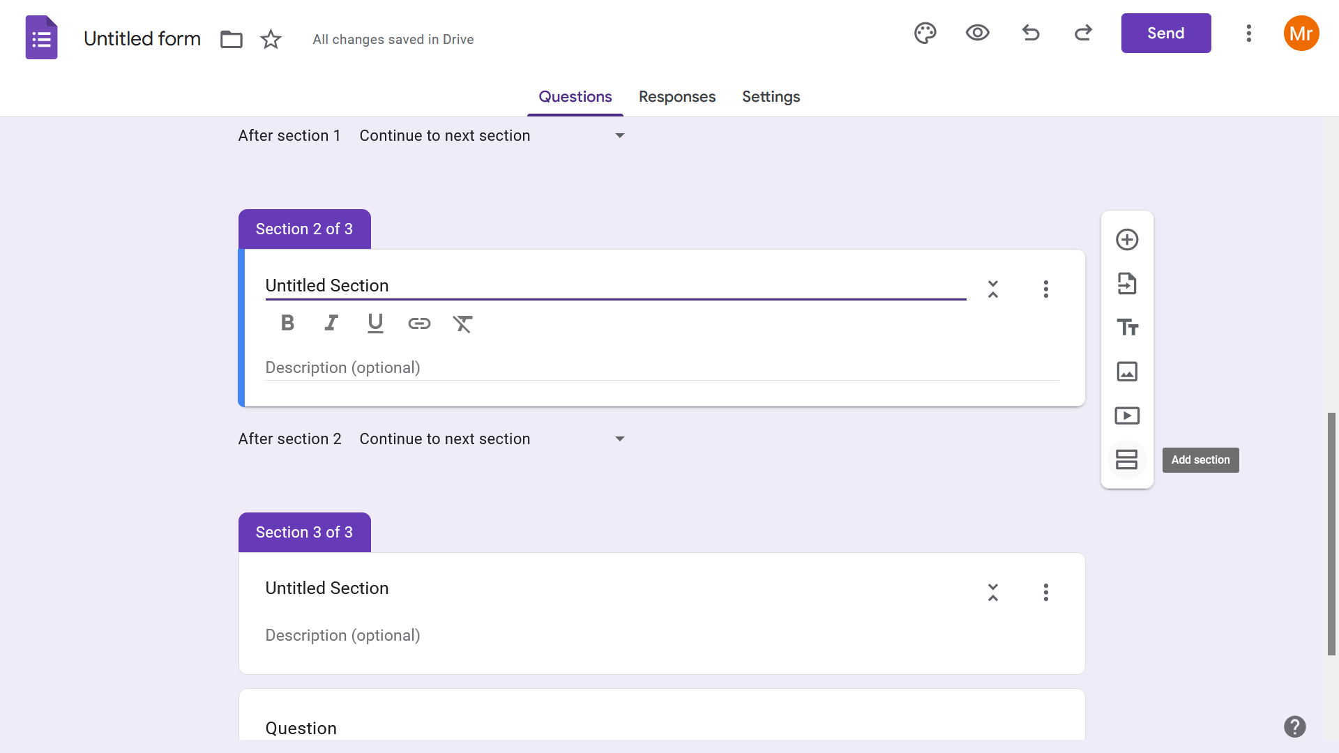 উদাহরণস্বরুপ, আপনি ফর্মটিতে প্রশ্ন যুক্ত করা, ছবি এবং ভিডিও সংযুক্ত করা, ফর্মে টাইটেল ও সেকশন তৈরী করা এবং ফর্মের সেটিংসও পাল্টানোসহ ইত্যাদী।